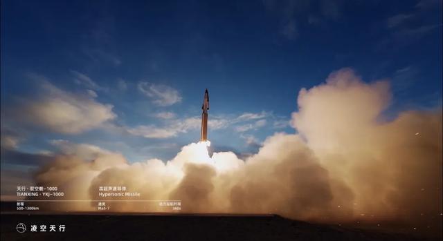 该公司在其宣传片中演示了导弹饱和式打击的场景。视频内容显示,“驭空戟-1000”以5-7马赫飞行速度,对预定目标实施饱和攻击,并且可做到自动识别目标、自动躲避危险。