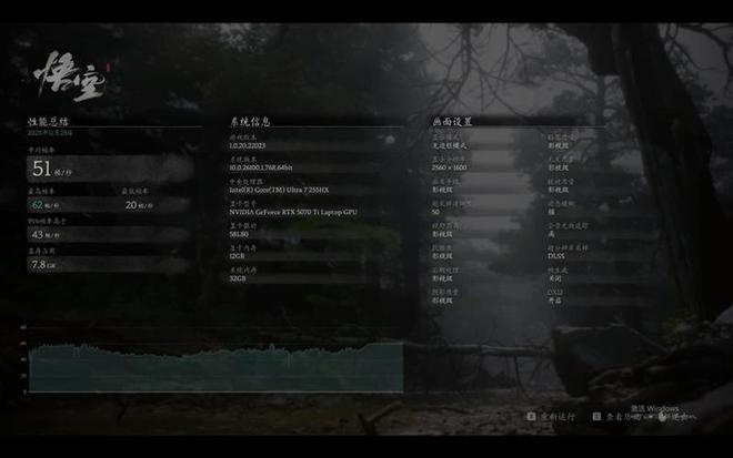 在《黑神话·悟空》中,使用影视级画质预设,DLSS采样精度设置为50,记录2K分辨率时的游戏帧数。