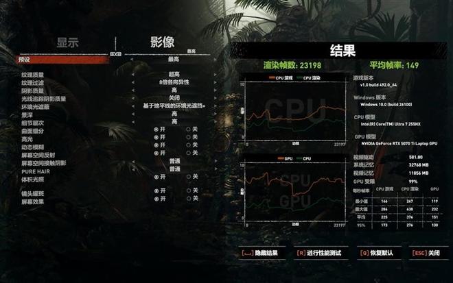 在《古墓丽影:暗影》中,使用2K分辨率和最高画质测试,平均帧率为149。