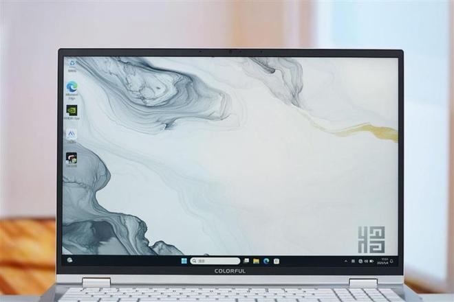 七彩虹将星X16 Pro笔记本采用了银白色顶盖配黑色机身的设计,顶盖左上角有一个艺术化处理的"将"字。