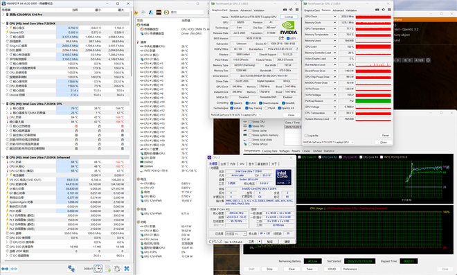 性能方面七彩虹将星X16 Pro笔记本配置接近旗舰水平,Intel酷睿Ultra 7 255HX处理器内建NPU,20核心20线程最高睿频5.2GHz,烤机时可稳定释放115-125W,性能十分强悍。