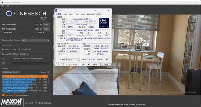 CINEBENCH R23测试,CPU单核成绩2093pts,多核成绩32431pts。