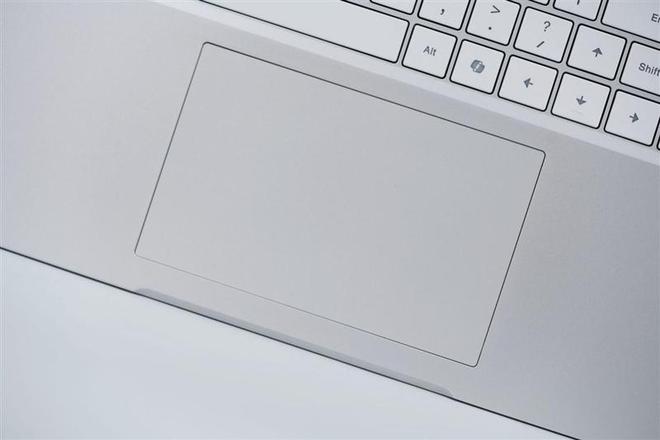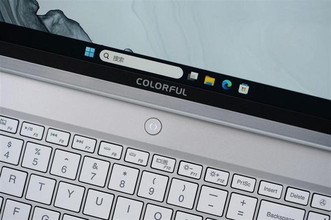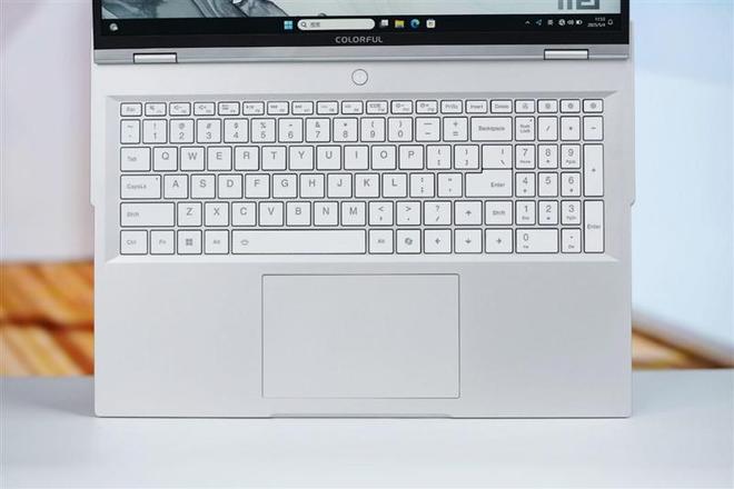 七彩虹将星X16 Pro笔记本的C面同样是银白色设计,得益于16寸的宽大机身,全尺寸键帽输入更轻松,同时还可以轻松布置下数字键盘,独立的圆形电源按钮布置在键盘区上方。