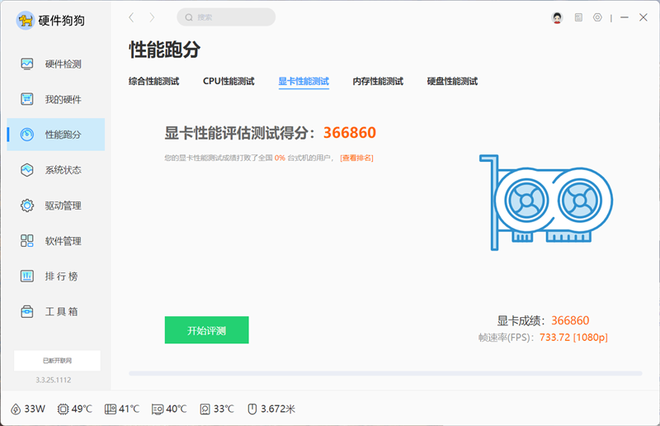 在硬件狗狗的显卡性能评估中,测试得分为366860。
