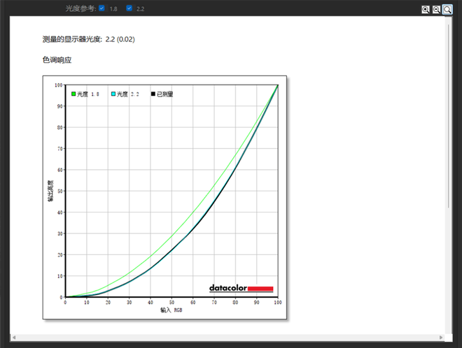 七彩虹将星X16 Pro笔记本屏幕的灰度曲线先Gamma值为2.2。