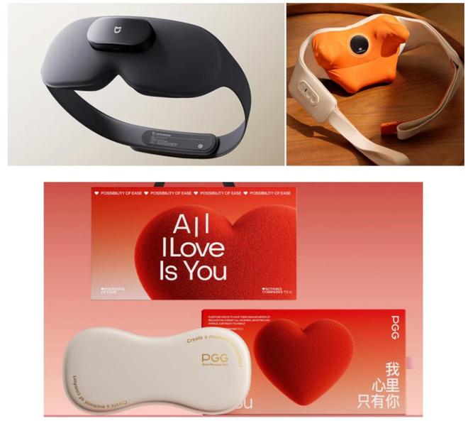 小米米家智能按摩眼罩(上左)、倍轻松一字开肩按摩器 N6mini(上右)、PGG W7腰部按摩仪(下)