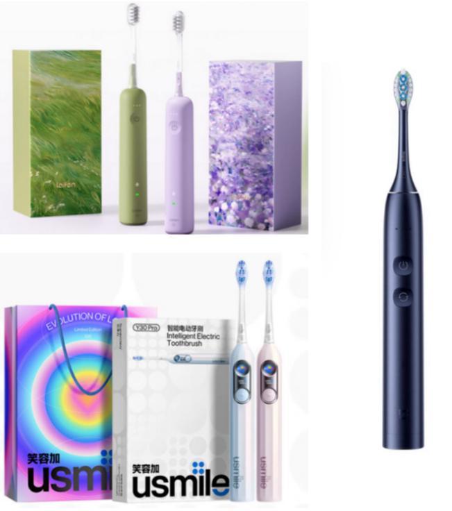 徕芬扫振电动牙刷SE(左上)、usmile笑容加Y30 Pro情侣款(左下)小米米家多向扫振电动牙刷(右)