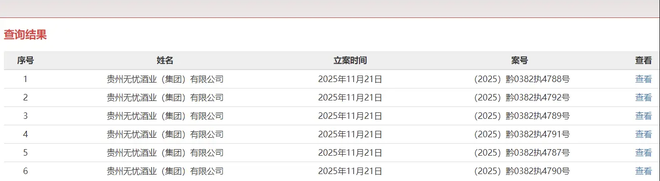 中国执行信息公开网披露,贵州无忧酒业(集团)有限公司于11月21日新增六则被执行人信息,执行法院为仁怀市人民法院,总执行标的约为6255.51万元,但具体原因并未披露。11月24日,有无忧酒业相关负责人回应称“公司基本面没变”。