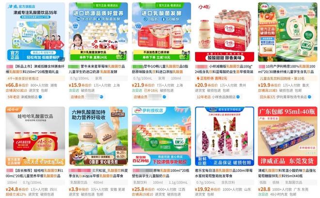 《消费者报道》记者搜索电商平台发现,目前在售的乳酸菌饮料产品种类繁多,除了伊利、蒙牛、光明、养乐多、味全、君乐宝、娃哈哈等以外,味动力、三只松鼠、盼盼、小样、界界乐等品牌都有推出相关产品。不同品牌的乳酸菌饮料售价从几元到数十元不等,每100ml售价为1元至2.2元。