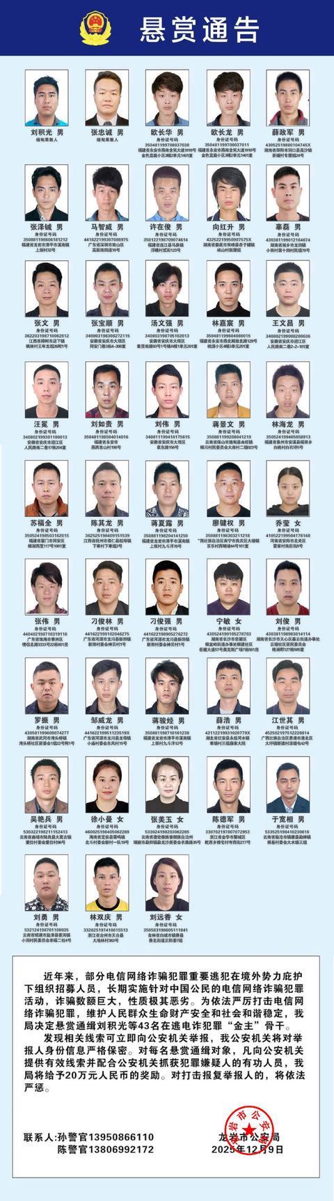 为依法严厉打击跨境电信网络诈骗犯罪,切实维护人民群众财产安全和合法权益,近日,公安部发布通缉令,公开通缉100名电信网络诈骗犯罪在逃金主和骨干,其中包括吴启平、吴清正、傅小滨、欧长华等缅北“四大家族”犯罪集团重要逃犯。