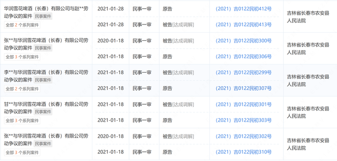 雪花长春公司也曾“反击”过。因不满2019年第一次劳动仲裁结果,其曾将290多名职工告上法庭。
