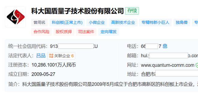 天眼查显示,国盾量子成立于2009年5月,位于安徽省合肥市,2020年7月在上交所科创板上市,主要从事量子通信设备制造及量子信息系统服务。