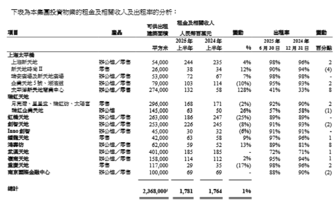 事实上,瑞房在商业板块也付出了不少努力。据该公司披露,2025年上半年,瑞房旗下物业组合的销售额、客流量较2024年同期相比均增长了10.5%。至于办公楼部分,公司旗下相对成熟的上海办公楼组合也保持了稳定的出租率,平均出租率达90%。