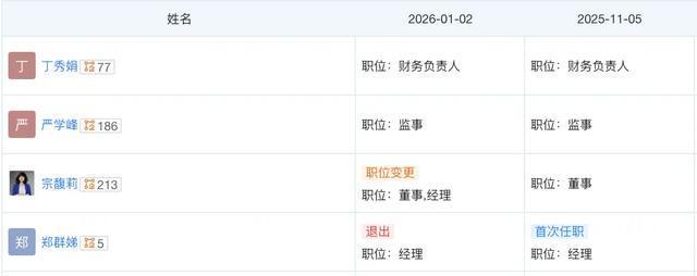 此外,郑群娣已不再担任宏胜集团经理,由宗馥莉担任。