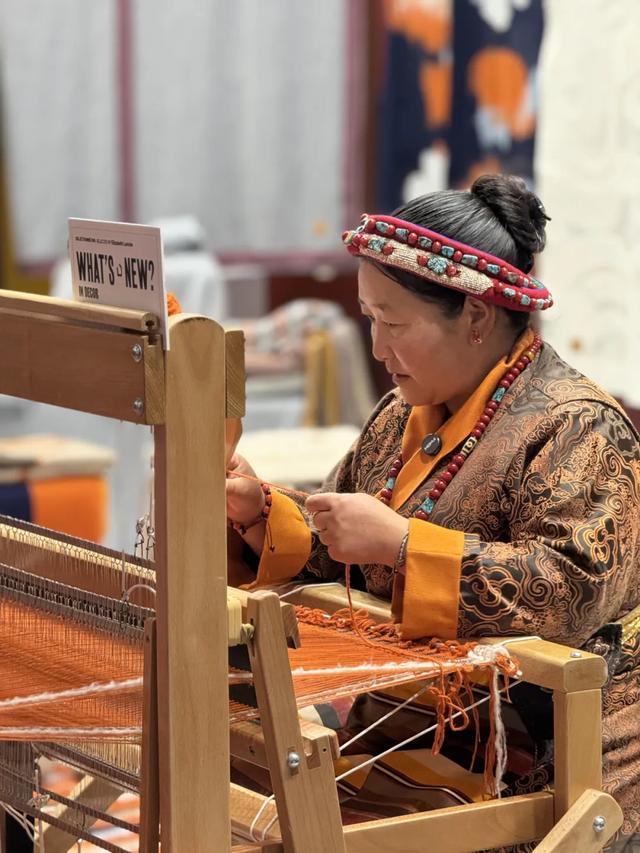2025年巴黎M&O国际家居设计展新氆氇工匠格桑阿佳展示织氆氇工艺。图源“Sandrive沙涓羊绒”微信公众号