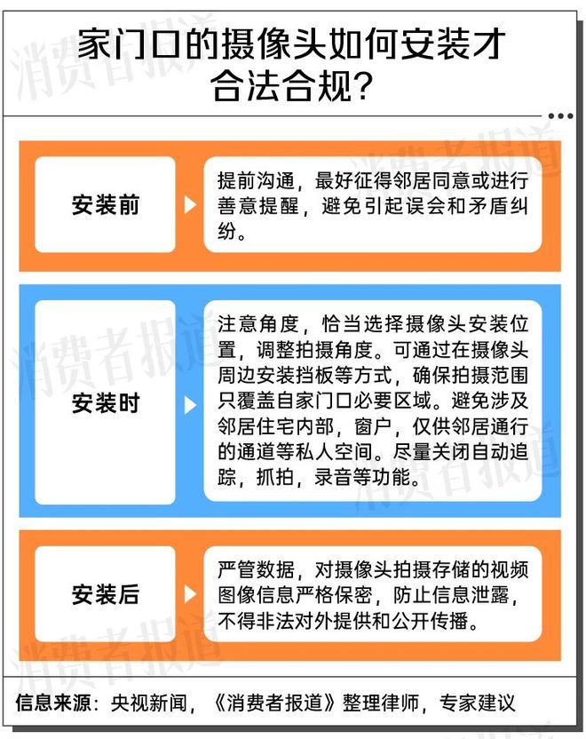 关于如何合规安装与使用智能门锁,湖北春园律师事务所郭展律师接受《消费者报道》记者采访时建议,应将摄像头角度严格对准自家门口区域,避免对准邻居家门、窗户、阳台等私密区域。何生廷律师补充称,用户可主动关闭门锁的录音、自动抓拍、长期存储等非必要功能,且绝不私自传播、分享拍摄到的内容。同时,最好与邻居提前沟通安装意图和拍摄范围,以减少误解与纠纷。