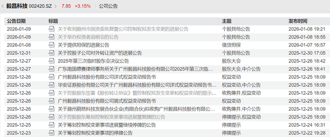2025年12月22日晚间,毅昌科技披露公告,称控股股东高金技术产业集团有限公司(下称“高金集团”)正筹划控制权变更事项,公司股票于2025年12月23日起停牌。
