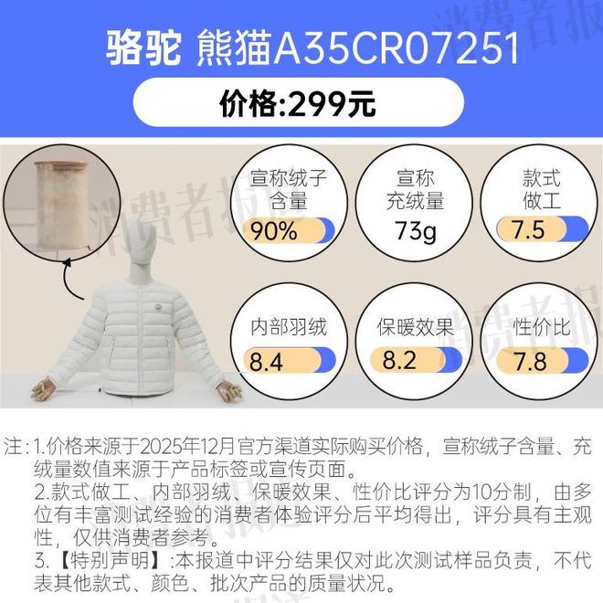主观评分:款式做工、内部羽绒、保暖效果、性价比