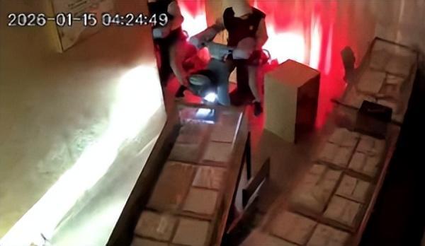 紧接着,该账号发布第二段视频,该视频为店内监控录像,时间显示从1月15日凌晨3时45分许持续到4时40分许,记录了一名年轻白衣男子砸门进入店内洗劫饰品柜台的全过程,期间,该男子还曾大幅度推动一侧柜台,将一只疑似保险柜的物件推出店外。这一过程中,另一身着深色衣服的男子还将一辆电动车骑进店内。最后,透过金店玻璃门一角可看到,盗窃男子疑似骑乘一辆电动车离开。
