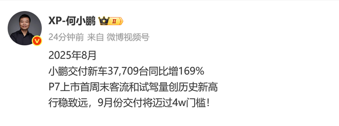 今日,小鹏汽车公布最新交付成绩:2025年8月,小鹏汽车共交付新车37,709台,同比增长169%,环比增长3%,单月交付量再创历史新高。2025年1-8月,小鹏汽车累计交付新车271,615台,同比增长252%。