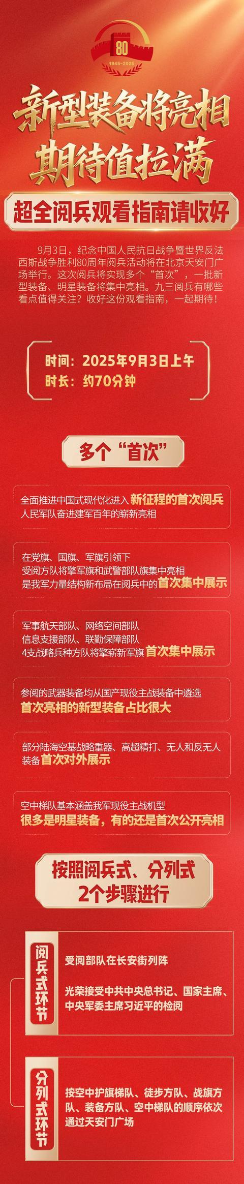 九三阅兵超全观看指南 访客 2025-09-03 11:12:42 41 默认 九三阅兵超全观看指南,包括阅兵仪式精彩瞬间、部队装备展示等,值得收藏。 来源 人民日报 D21 标签: 人民日报 来源 文章版权及转载声明 作者:访客本文地址:https://bmwqd.com/post/472.html发布于 2025-09-03 11:12:42文章转载或复制请以超链接形式并注明出处品途网 打赏 觉得文章有用就打赏一下文章作者 支付宝扫一扫打赏 微信扫一扫打赏 海报 阅读 QQ 分享 微博分享 微信分享 分享 上一篇分列式训练,震撼实战体验 下一篇长安街阅兵仪式震撼登场 分列式训练,震撼实战体验上一篇 长安街阅兵仪式震撼登场下一篇 相关推荐 人民日报来源 景区未接到飞刀表演疑失误,尖刀砸中演员面部后弹飞事件 2026-01-15 观致汽车工厂拍卖,仅一人报名起拍价8.5亿元 2026-01-15 成毅车辆遭恶意行为,家人被跟踪,工作室紧急声明 2026-01-15 深夜大学校外两车漂移险肇事调查 2026-01-15 央企薪酬揭秘,通信能源类央企薪酬领跑,未现极端高薪 2026-01-15 北京退休人员产检报销政策引热议,专家解读保障生育权利 2026-01-14 宁夏小羊走红引关注,羊主人拒绝高价购买,推广家乡特色文化 2026-01-14 陕西汽车国补落地,补贴计算方式引入比例限制 2026-01-14