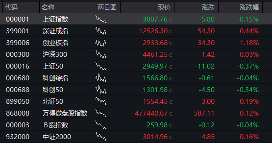 创业板指转跌,科创50指数跌超2%。