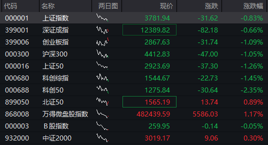 A股:截至发稿,沪指跌0.83%,深成指跌0.66%,创业板指跌1.09%。![]()
