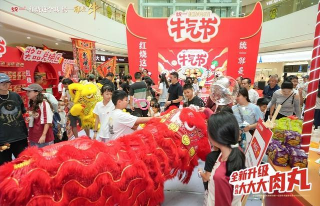 活动现场气氛热烈,内容丰富多彩。传统舞狮表演铿锵有力,寓意吉祥,引来观众阵阵喝彩;糖画艺人以娴熟技艺绘制出生动图案,吸引众多家庭驻足体验;国风舞蹈演员身着华服,翩跹起舞,展现出中华优秀传统文化的当代魅力。同时,统一红烧牛肉面带来的美食香气与秋日清爽氛围相融合,形成独具一格的沉浸式消费场景。