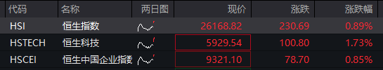 港股:截至发稿,恒指涨0.89%,恒科指涨1.73%。![]()