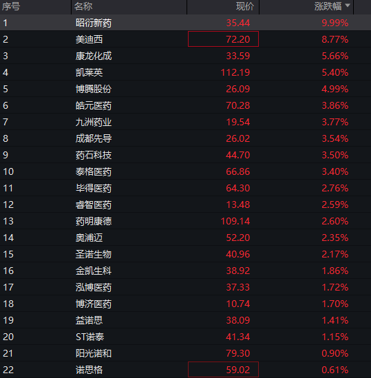 早盘CRO概念震荡走强,昭衍新药涨停,美迪西、康龙化成、凯莱英、九洲药业、博腾股份等跟涨。