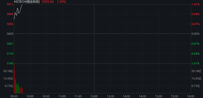 恒生科技指数涨幅扩大至1.1%,哔哩哔哩涨超4%,百度、阿里巴巴涨超3%。
