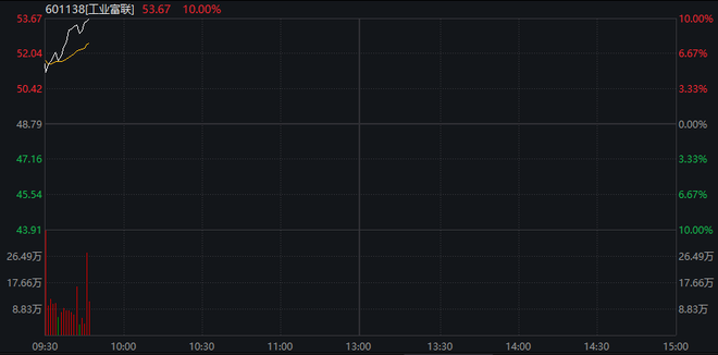 工业富联盘中触及涨停,开盘15分钟成交额超100亿元。