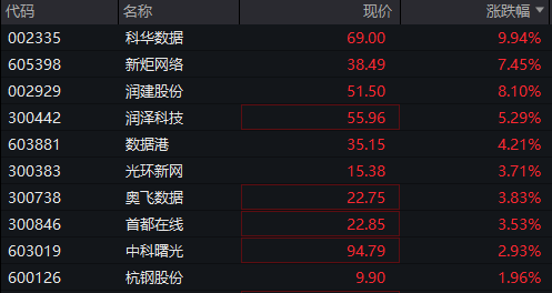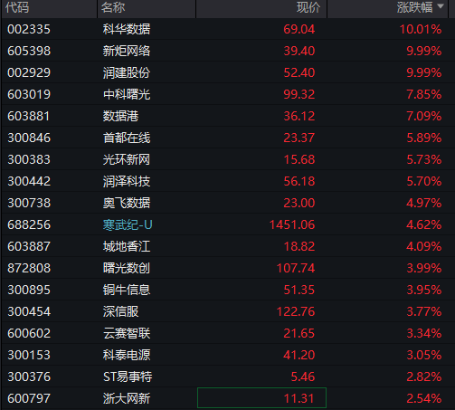 A股算力概念股继续活跃,新炬网络3连板,荣联科技、科华数据、润建股份、易华录、数据港等多股高开。