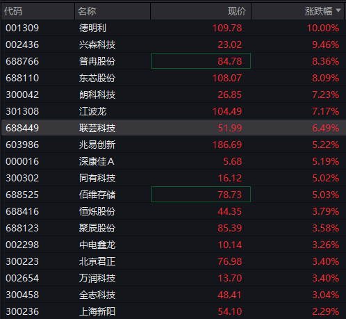 早盘存储芯片概念走强,德明利涨停,香农芯创涨超3%续创历史新高,江波龙、普冉股份、朗科科技、佰维存储、万润科技等跟涨。