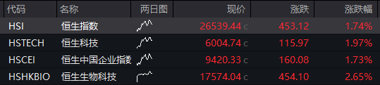 恒指跳空高开1.74%,恒生科技指数涨1.97%。