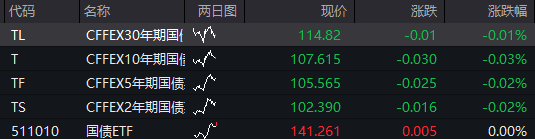 债市:国债期货全线下跌,截至发稿,30年期主力合约跌0.01%,10年期主力合约跌0.03%,5年期主力合约跌0.02%,2年期主力合约跌0.02%。![]()