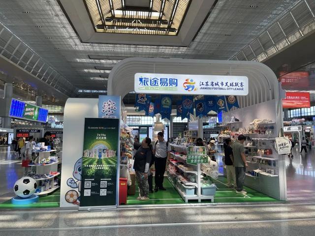 8月18日,南京南站“苏超”文创商店,旅客在挑选苏超周边文创产品。国是直通车 段修健 摄