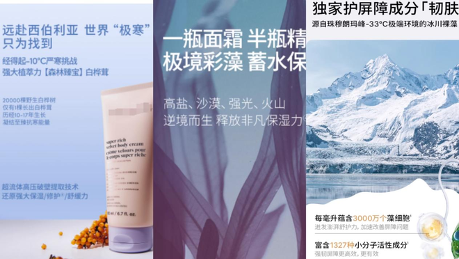 极寒地区生长的生物,因长期适应低温、强辐射等极端环境,进化并积累了丰富的抗逆修护因子。因此,不少商家会宣称利用科学技术将其提取并复配用于儿童保湿面霜,让产品自带“抗寒抗燥”滤镜。同时,由于极端环境远离工业、农药污染,其提取物天然具备“纯净”光环,契合了部分家长对儿童护肤产品“零添加、安全”的消费需求。