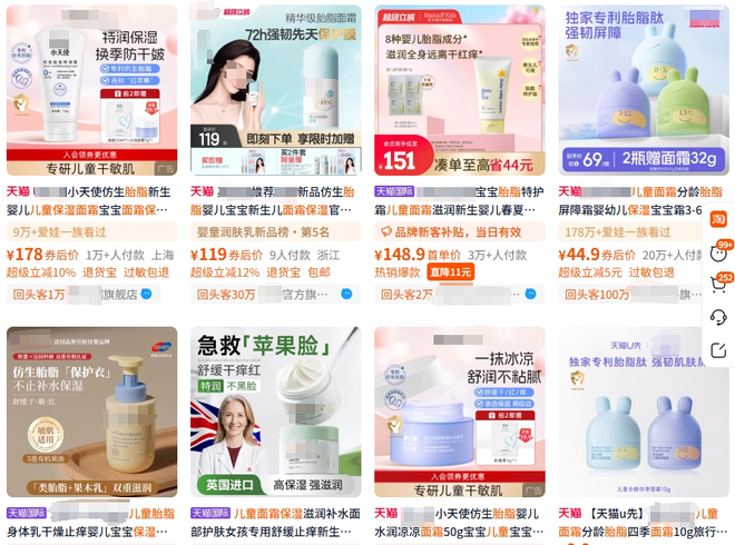继金盏花、牛油果等具有舒缓肤质的天然植物油萃取成分后,儿童保湿面霜界近年兴起一股“仿生胎脂”热潮。与传统保湿面霜的“补水”或“涂油”不同,这类产品致力于为宝宝娇嫩的肌肤重建保护屏障。