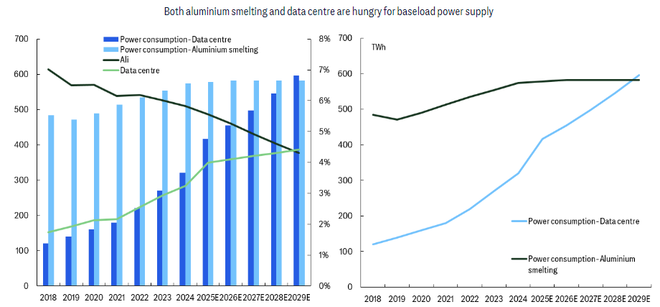 报告数据还显示,2025年第一季度,中国上市公司的数据中心资本支出同比增长了100%;同年7月,工业机器人年化产量同比增长约60%至90万台。这些新兴领域不仅直接消耗大量铝材,更重要的是,它们对电力的巨大需求与铝冶炼形成了直接竞争。