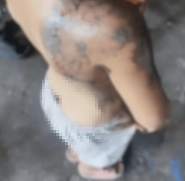女童洗澡时被哥哥用打火机零件电伤,出现大面积红肿和脱皮。
